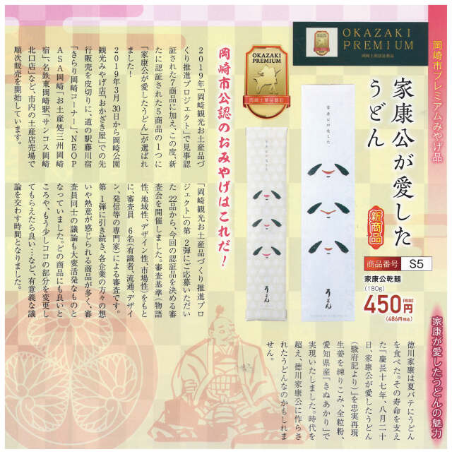 家康公乾麺:うどん 5本入り、つゆ、一味付き